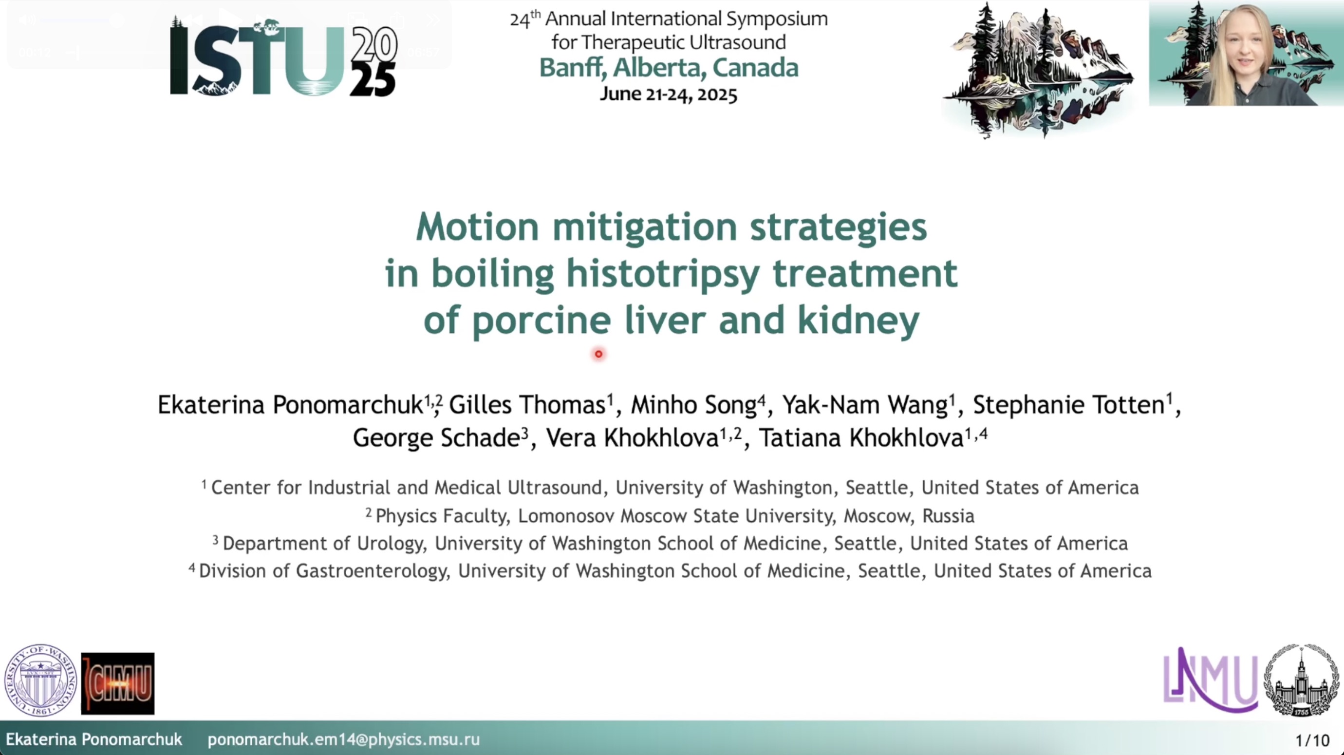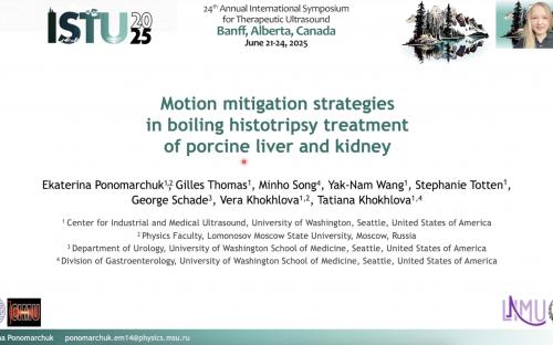 Our research fellow Ekaterina Ponomarchuk gave an oral talk on the results of a recently published work on the motion mitigation strategies in transcutaneous ultrasound surgery with boiling histotripsy.