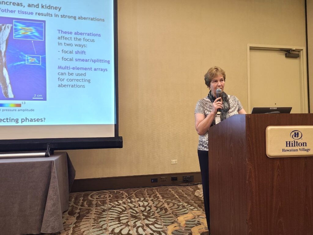 •Вера Александровна представила приглашенный доклад о совместной с Федором Нартовым разработке персонализированного подхода к коррекции аберраций в режиме реального времени при ультразвуковой терапии органов брюшной полости.