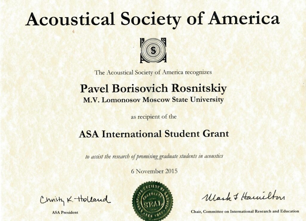 ASA Student Award, recognition on O.V.Deripaska MSU contest, paper in IEEE UFFC
