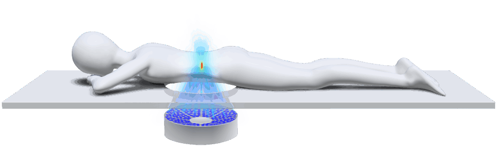 - transducer design, including phased arrays, to achieve the target amplitudes of shock fronts at the focus;