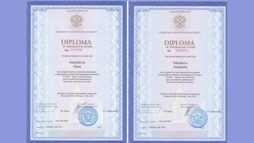 A graduation ceremony for PhD students of the Physics Faculty of Moscow State University was held on the 6th of March 2018. This ceremony was performed for the first class that graduated from a new 4-year Phd Program. The Program is aimed to give students both research and teaching qualifications. LIMU students Anastasiya Nikolaeva and Elena Annenkova received their certificates of “Researcher. Instructor-researcher”.