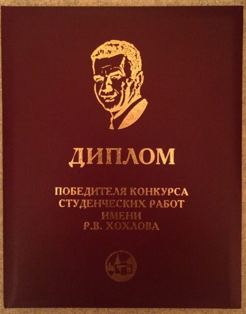 Diploma of the winner of the R.V. Khokhlov Student Work competition