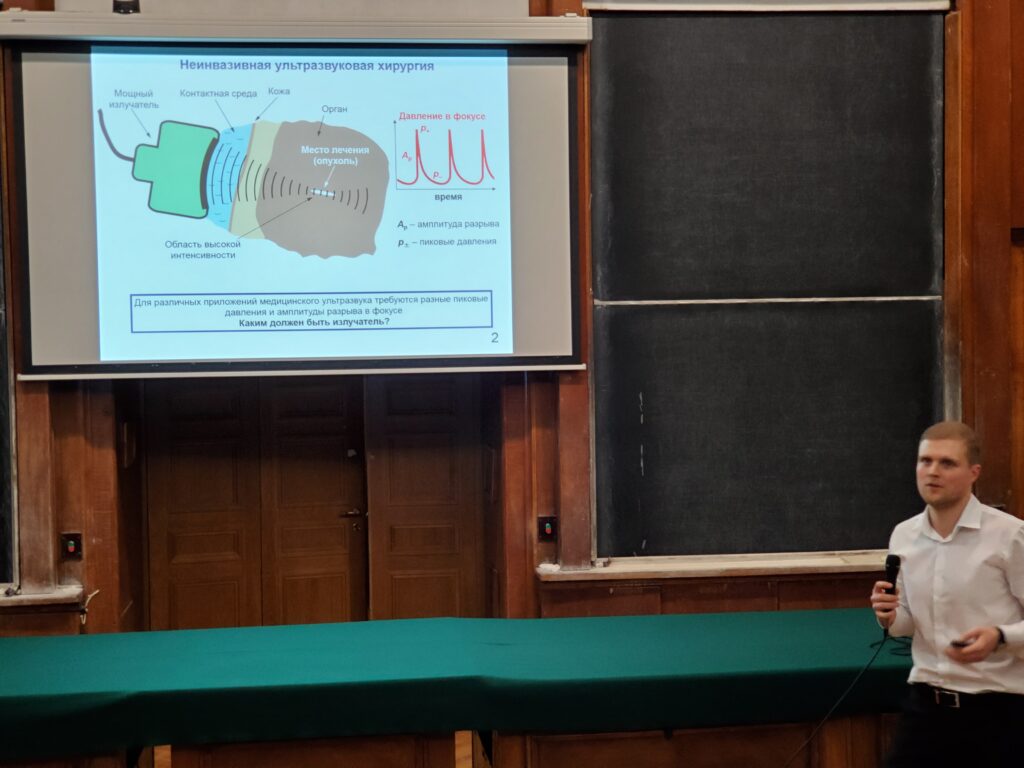 A meeting of the MSU dissertation Council was held on December 12, 2019 where the thesis of Pavel RosnitskiyMultiparametric analysis of nonlinear effects in shock-wave fields generated by focusing systems for applications in non-invasive ultrasound surgery” was presented. The PhD thesis was prepared under supervision of Dr. Vera Khokhlova.