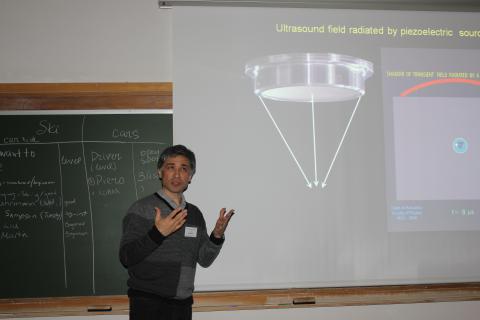 В этом году в Школе приняли участие около 75 исследователей, из них 20 лекторов — ведущих мировых ученых в области терапевтического ультразвука, практикующих хирургов и радиологов; около 30 студентов и аспирантов различных специальностей из США, России, Франции, Великобритании, Германии и Голландии. Вера Александровна Хохлова и Олег Анатольевич Сапожников в качестве лекторов Школы познакомили участников с физическими основами нелинейной акустики, распространения ультразвука в биологических тканях, генерации и калибровки мощных ультразвуковых полей. Студенты и аспиранты лаборатории, занимающиеся медицинским ультразвуком (Карзова М.М., Анненкова Е.А., Николаева А.В., Росницкий П.Б.), также выступили с докладами на конкурсе студенческих работ по терапевтическому ультразвуку. Ежегодно молодые ученые нашей лаборатории получают высокие оценки жюри на конкурсе. В этом году аспирантка Николаева Анастасия стала одним из победителей школы, на предыдущих Школах в разные годы высшей награды удостаивались Карзова Мария и Юлдашев Петр.