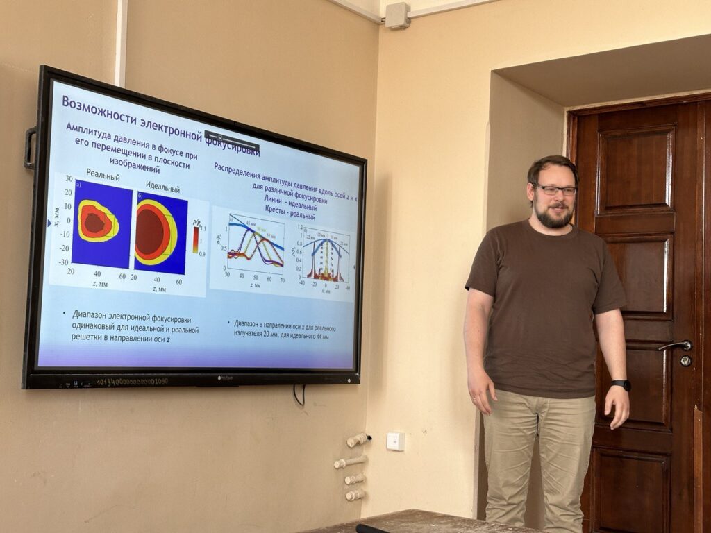 - Нартова Федора «Особенности акустических характеристик полей основных типов мощных ультразвуковых фокусирующих решеток» (научный руководитель Хохлова Вера Александровна, консультант Карзова Мария Михайловна, рецензент Цысарь Сергей Алексеевич),