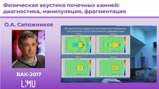 8 июня, 2017 Физическая акустика почечных камней: диагностика, манипуляция, фрагментация. О.А. Сапожников. Пленарная лекция на II Всероссийской акустической конференции, совмещённой с XXX сессией Российского акустического общества Лекции Ультразвук в медицине