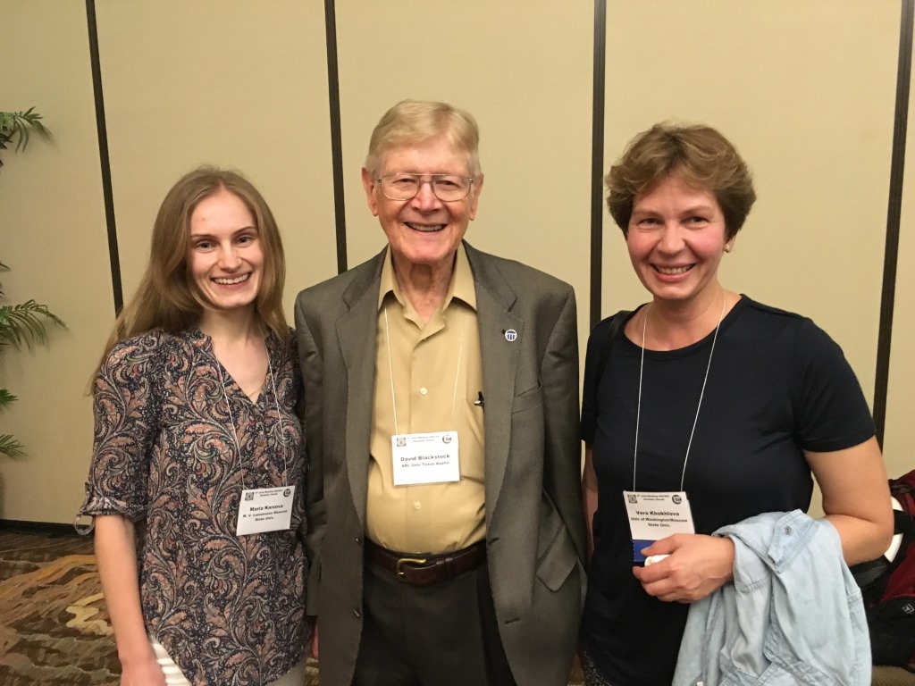 О.А. Сапожников представил два устных доклада о нелинейных эффектах в фокусе акустического излучателя в форме полусферы и об эффекте захвата и перемещения почечных камней с помощью ультразвукового пучка. В.А. Хохлова сделала приглашенный доклад о последних достижениях в области ультразвуковой хирургии методом гистотрипсии с кипением, а также рассказала о методах характеризации высокоамплитудных полей, создаваемых кольцевой многоэлементной решеткой.