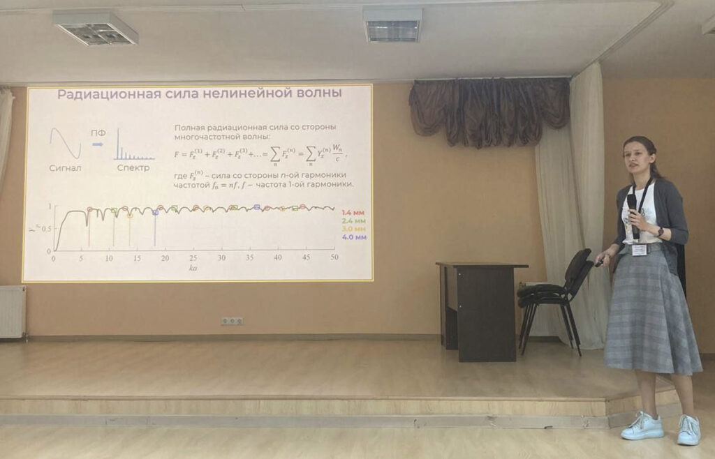 От лаборатории LIMU было представлено 9 докладов аспирантами Е.О. Конновой, Л.М. Котельниковой, Д.Д. Чуповой, П.А. Пестовой, Ш.А. Асфандияровым и А.В. Квашенниковой, магистрами Ф.А. Нартовым и О.В. Солонцовым и сотрудником С.А. Цысарем. По результатам голосования участников школы четыре представителя нашей лаборатории были награждены грамотами за лучший научный доклад: Асфандияров Ш.А. в секции «Акустика неоднородных сред», Нартов Ф.А. за лучший стендовый доклад, Коннова Е.О. в секции «Математические задачи волновой физики» и Пестова П.А в секции «Био- и медицинские приложения волновой физики».